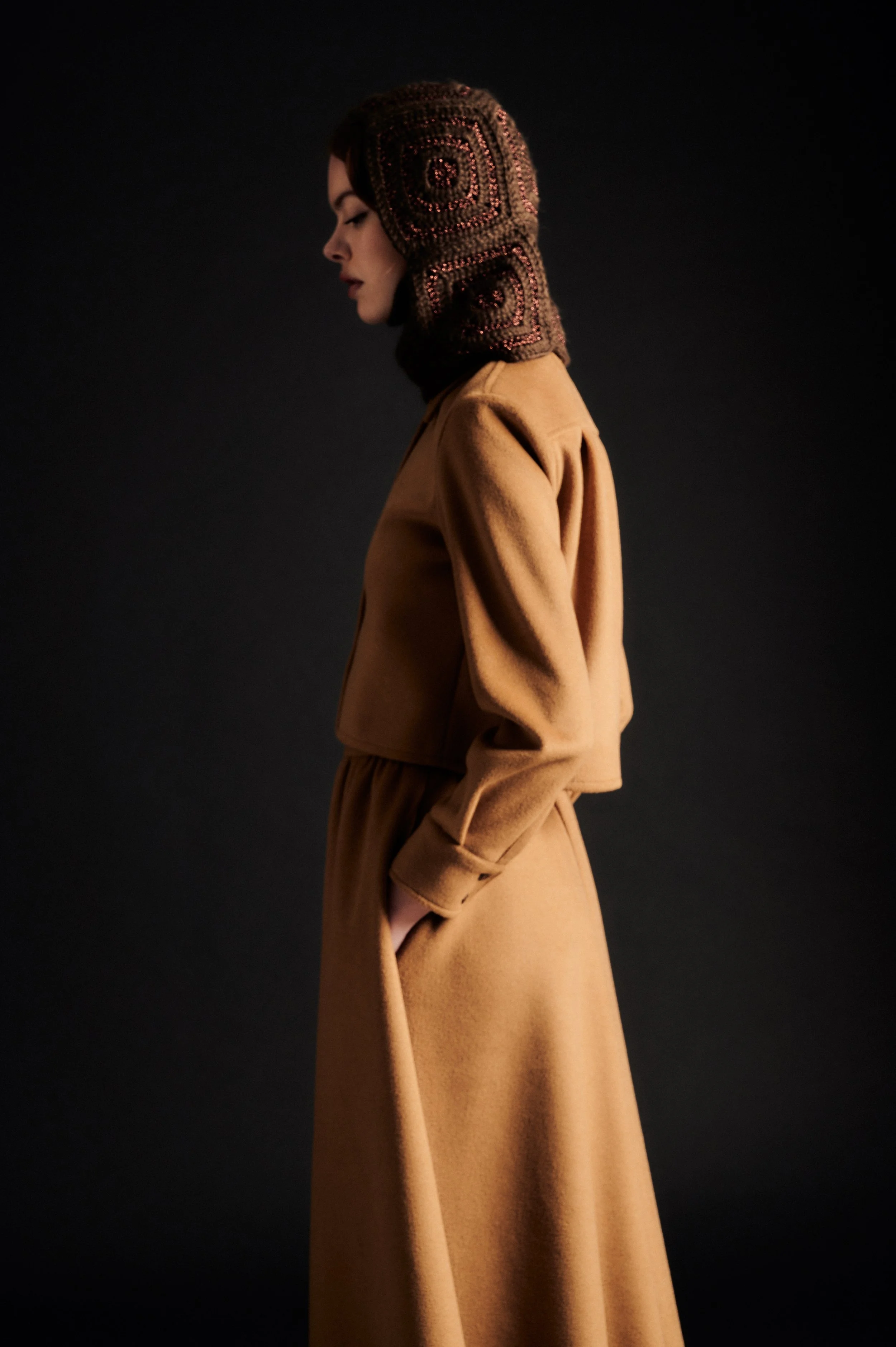 Our skirt combines the timeless traditional silhouette with the cozy comfort of wool, and will elegantly wrap you during the winter period.